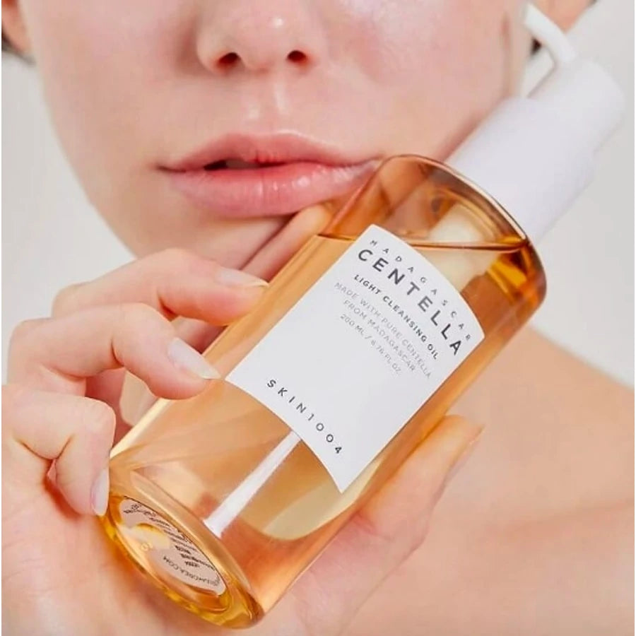 SKIN1004 – Madagascar Centella Light Cleansing Oil – lekki olejek micelarny wzbogacony ekstraktem z wąkroty azjatyckiej i mieszanką sześciu olejków roślinnych, który rozpuszcza makijaż, filtry UV i nadmiar sebum, jednocześnie łagodząc skórę. Wodna tekstura emulguje się w mleczne wykończenie, zapewniając skuteczne oczyszczenie bez pozostawiania resztek, dzięki czemu nadaje się do wszystkich typów skóry – w tym wrażliwej i mieszanej.
